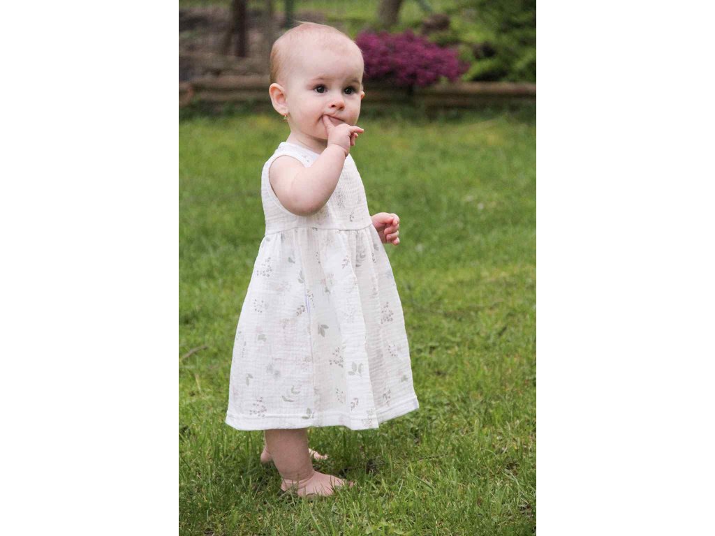 Módne mušelínové dojčenské šatôčky českej značky New Baby Zoe pre všetky malé parádnice. Šatičky sú bez rukávov v tvare písmena A. Spodná časť má krásne nariasenú sukienku. Zapínanie na cvoček na zadnej strane uľahčí obliekanie. Šaty majú veľmi príjemnúčký, mäkučký a kvalitný materiál, ktorý je vhodný pre bábätká. Sú ľahučké a veľmi príjemné pri nosení. Pre New Baby je veľmi dôležitá spokojnosť zákazníka a práve preto vám ponúkame naše kvalitné letné mušelínové šatôčky. Zloženie: 100% bavlna. Mušelín je jedna z najčistejších, najjednoduchších a najjemnejších tkanín na svete. Jemne tkaný priedušný materiál je taký dokonalý, že si ho zamilujú deti po celom svete. Ľahká štruktúra umožňuje mušelínu „dýchať“ a zaisťuje dostatočnú cirkuláciu vzduchu, čím znižuje riziko prehriatia. Táto vlastnosť pomáha udržať Vaše dieťa v pohodlí, bezpečí a rodičia v pokoji. Mušelín je veľmi odolný a to tak, že bez problémov zvláda opakované pranie a postupom času je ľahší a jemnejší.Dodatočné parametre