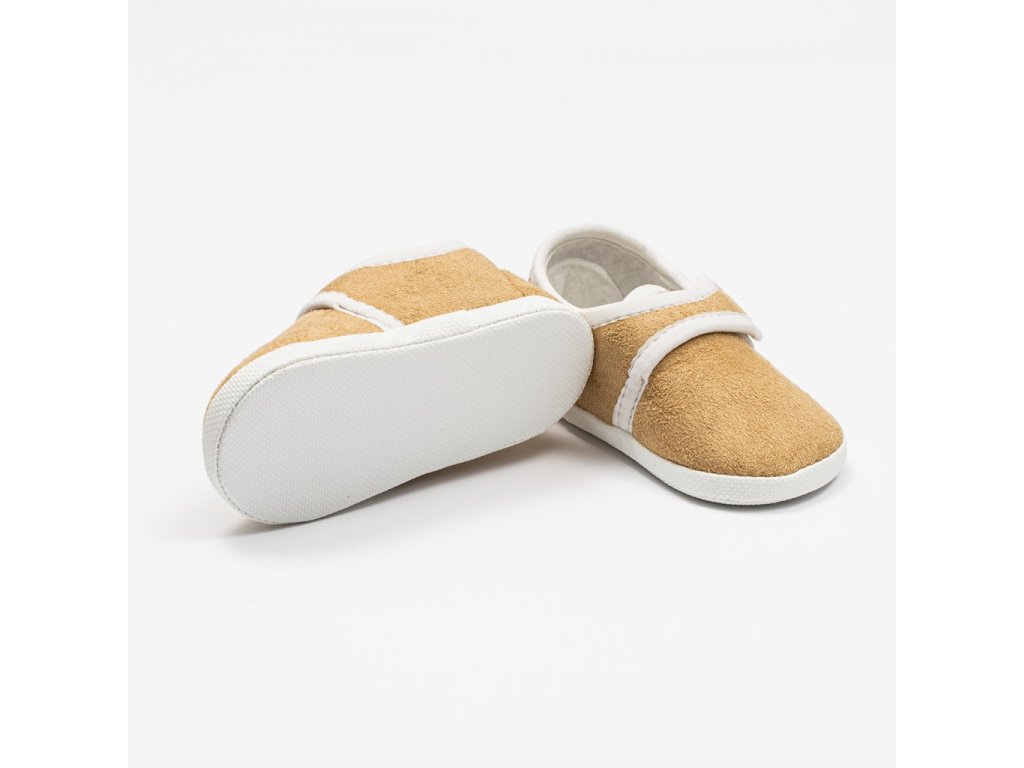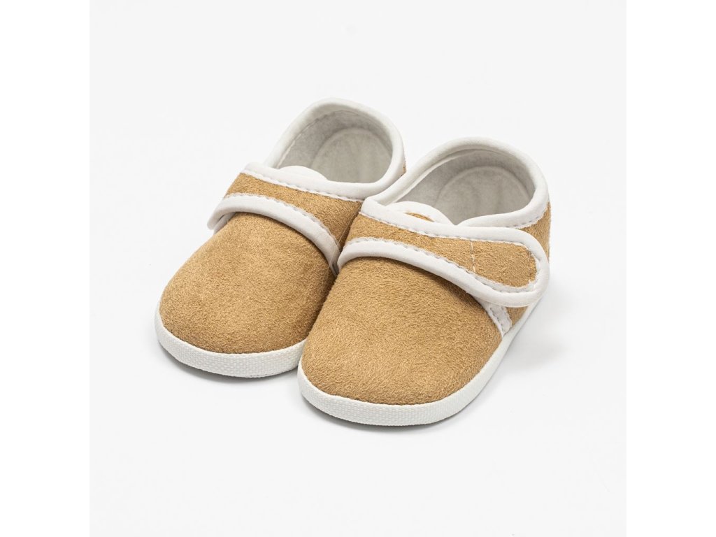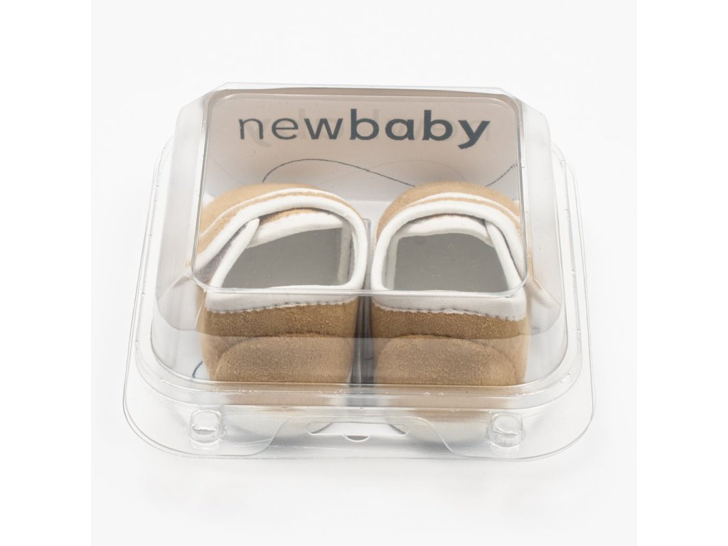 Dojčenské capáčky New Baby pre bábätká. Krásne topánočky s moderným vzhľadom na suchý zips. Capáčky priliehajú k nožičke a majú široké vnútro, čo umožňuje voľný pohyb prstov a svalov. Výrobok nie je určený na chôdzu. Sú veľmi ľahké s tenkou syntetickou podrážkou. Zloženie: ekologický semiš: 100% polyester. Podrážka: syntetický materiál PVC bez BPA. Dĺžka vnútornej stielky 10 cm. Určené pre deti 0-3 mesiacov. Dodávané v praktickej krabičke. Upozornenie: pod textilnou vložkou sa niekedy nachádza papierová vložka, ktorá drží tvar capáčky. Pred prvým použitím odstráňte túto papierovú vložku.Dodatočné parametre
