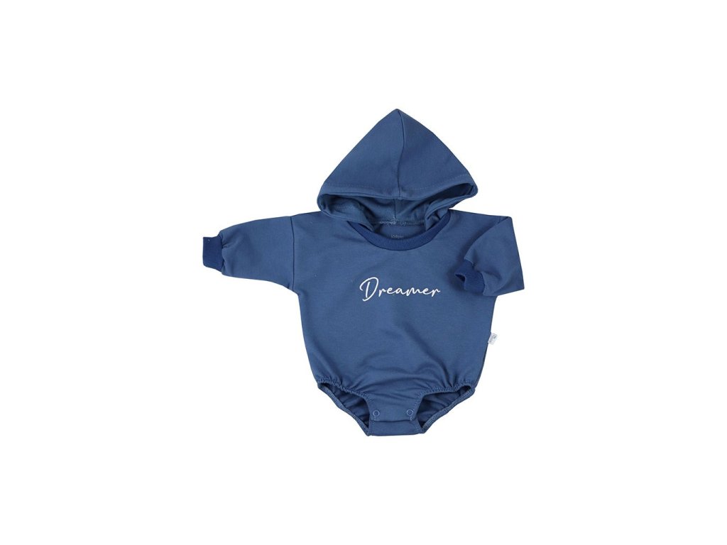 Nápadité body s dlhým rukávom a kapucňou Koala Dreamer. Body má zapínanie na cvočky medzi nožičkami čo uľahčuje obliekanie a prebaľovanie. Okolo krčka je pružný lem pre ľahké obliekanie cez hlavičku. Je zdobené nápisom Dreamer a je ušité v štýle baggy z veľmi príjemnej teplákoviny. Body je pre bábätká dôležitým kúskom oblečenia. Pri akomkoľvek pohybe sú chrbát bábätka stále prikryté. Materiál: 96% bavlna, 4% elastan.Dodatočné parametre