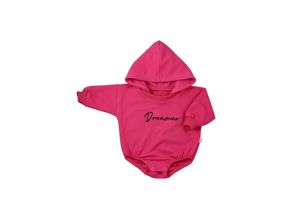 Dojčenské teplákové body baggy s kapucňou Koala Dreamer tmavo ružová