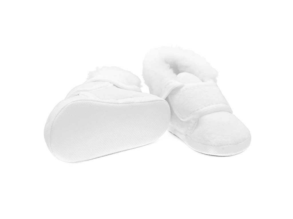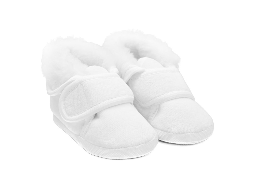 Dojčenské zimné capáčky New Baby pre bábätká. Krásne, teplé semiškové capáčky s moderným vzhľadom a zapínaním na suchý zips. Vnútorná časť je vystlaná rúnovou pleteninou-100% polyester. Capáčky priliehajú k nožičke a majú široké vnútro, čo umožňuje voľný pohyb prstov a svalov. Výrobok nie je určený na chôdzu. Sú veľmi ľahké s tenkou syntetickou podrážkou. Zloženie: ekologický semiš - 100% polyester, rúnová pletenina-100% polyester. Podrážka: syntetický materiál PVC bez BPA. Dĺžka vnútornej stielky 10 cm. Určené pre deti 0-3 mesiacov. Dodávané v praktickej krabičke. Upozornenie: pod textilnou vložkou sa niekedy nachádza papierová vložka, ktorá drží tvar capáčky. Pred prvým použitím odstráňte túto papierovú vložku.Dodatočné parametre