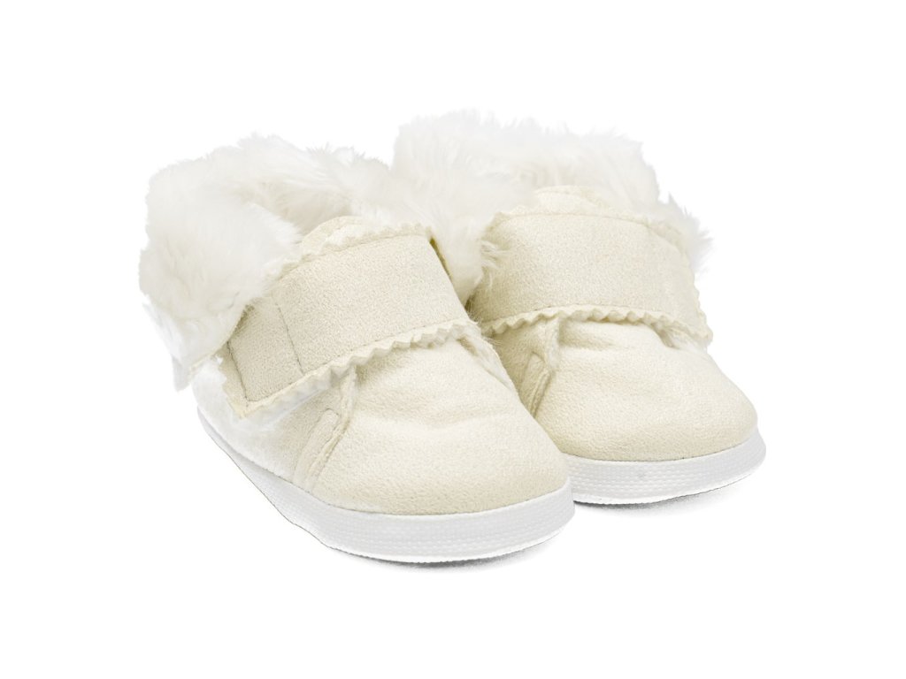 Dojčenské zimné capáčky New Baby pre bábätká. Krásne, teplé semiškové capáčky s moderným vzhľadom a zapínaním na suchý zips. Vnútorná časť je vystlaná rúnovou pleteninou-100% polyester. Capáčky priliehajú k nožičke a majú široké vnútro, čo umožňuje voľný pohyb prstov a svalov. Výrobok nie je určený na chôdzu. Sú veľmi ľahké s tenkou syntetickou podrážkou. Zloženie: ekologický semiš - 100% polyester, rúnová pletenina-100% polyester. Podrážka: syntetický materiál PVC bez BPA. Dĺžka vnútornej stielky 10 cm. Určené pre deti 0-3 mesiacov. Dodávané v praktickej krabičke. Upozornenie: pod textilnou vložkou sa niekedy nachádza papierová vložka, ktorá drží tvar capáčky. Pred prvým použitím odstráňte túto papierovú vložku.Dodatočné parametre