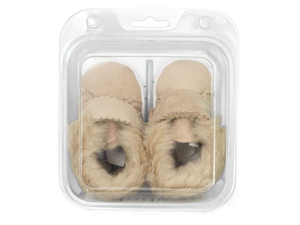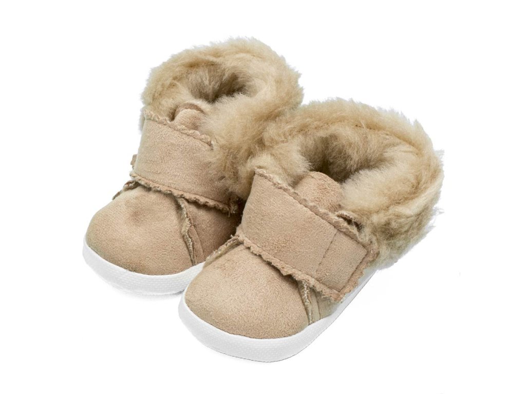 Dojčenské zimné capáčky New Baby pre bábätká. Krásne, teplé semiškové capáčky s moderným vzhľadom a zapínaním na suchý zips. Vnútorná časť je vystlaná rúnovou pleteninou-100% polyester. Capáčky priliehajú k nožičke a majú široké vnútro, čo umožňuje voľný pohyb prstov a svalov. Výrobok nie je určený na chôdzu. Sú veľmi ľahké s tenkou syntetickou podrážkou. Zloženie: ekologický semiš - 100% polyester, rúnová pletenina-100% polyester. Podrážka: syntetický materiál PVC bez BPA. Dĺžka vnútornej stielky 10 cm. Určené pre deti 0-3 mesiacov. Dodávané v praktickej krabičke. Upozornenie: pod textilnou vložkou sa niekedy nachádza papierová vložka, ktorá drží tvar capáčky. Pred prvým použitím odstráňte túto papierovú vložku.Dodatočné parametre