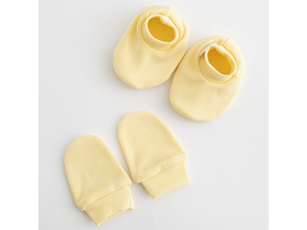 Dojčenský bavlnený set-capáčky a rukavičky New Baby Casually dressed žltá 0-6m