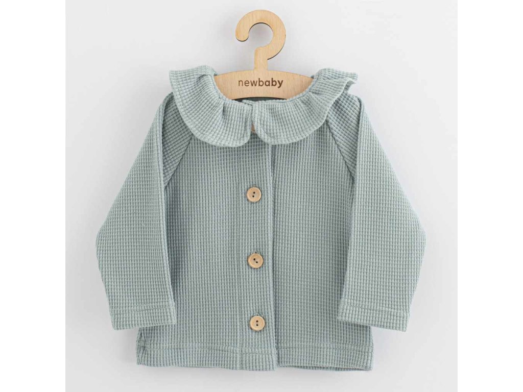 Elegantný dojčenský kabátik-svetrík. New Baby Laura. Dievčenský kabátik s krásnym golierom má praktické zapínanie na gombíky. Krásne drevené gombíky dodajú kabátiku elegantný vzhľad. Vďaka vzoru a vzhľadu kabátik hravo nahradí svetrík vo výbavičke dievčatiek. Je vyrobený z vysoko kvalitného materiálu. Vhodný na celoročné nosenie pre každý deň aj príležitosť. Zloženie: 100% bavlna.Dodatočné parametre
