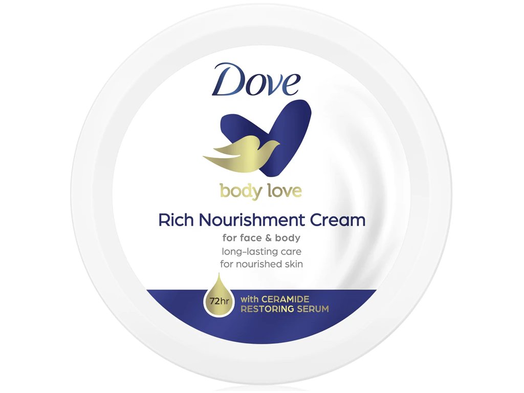 Nový výživný krém Dove je výborný hydratačný krém na všestranné použitie, ktorý je určený na hýčkanie celého tela. Rýchle vstrebávanie a výborná hydratácia sú zárukou lepšej starostlivosti o pokožku. Nový výživný viacúčelový krém je určený na každodenné použitie pre všetky typy pleti. Dove výživný krém je určený na použitie na ruky, telo i tvár. Vyznačuje sa príjemnou a nevtieravou vôňou a ľahkým otváraním.