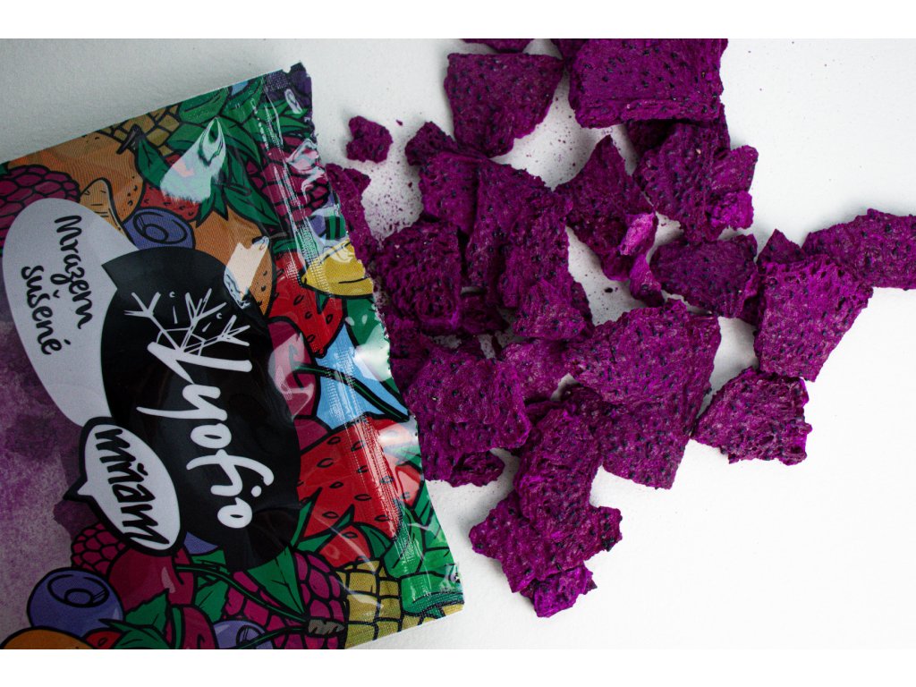 Dračie ovocie (pitahaya) nie je v našich krajinách príliš známe. Ovocie opradené mýtickými príbehmi o drakoch rastie na kaktuse v tropických oblastiach Ázie a latinskej Ameriky. Chuť dračieho ovocia je sladkastá, pripomína kombináciu melónu, hrušky a kivi . Vďaka sušeniu mrazom zostane chuť rovnako intenzívna ako pri čerstvých plodoch. Lyofilizácia zachová tiež prirodzenú vôňu i farbu a navrch dodá ovociu dokonalú chrumkavosť .