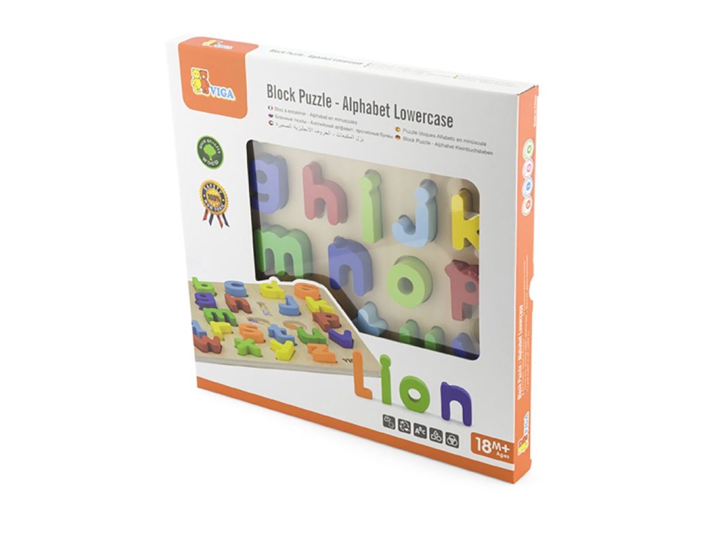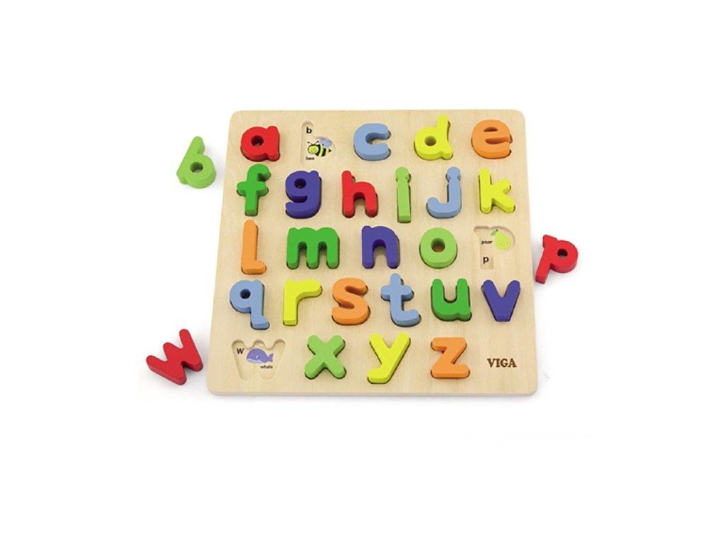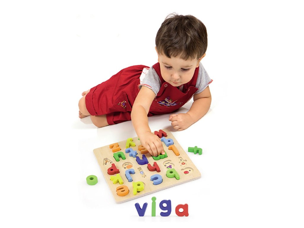Drevená abeceda na podložke od spoločnosti Viga je perfektným darčekom, ktorý poteší každé dieťa. Deti musia správne priradiť drevené písmená abecedy k otvorom v podložke. Sada obsahuje podložku s obrázkami a 26 farebných písmen abecedy.