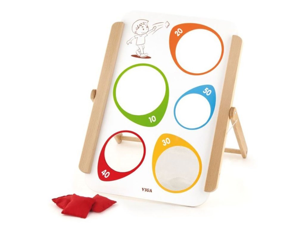 Snažte sa hádzať vrecká s fazuľami do otvorov, čím vyššie skóre, tým lepšie.