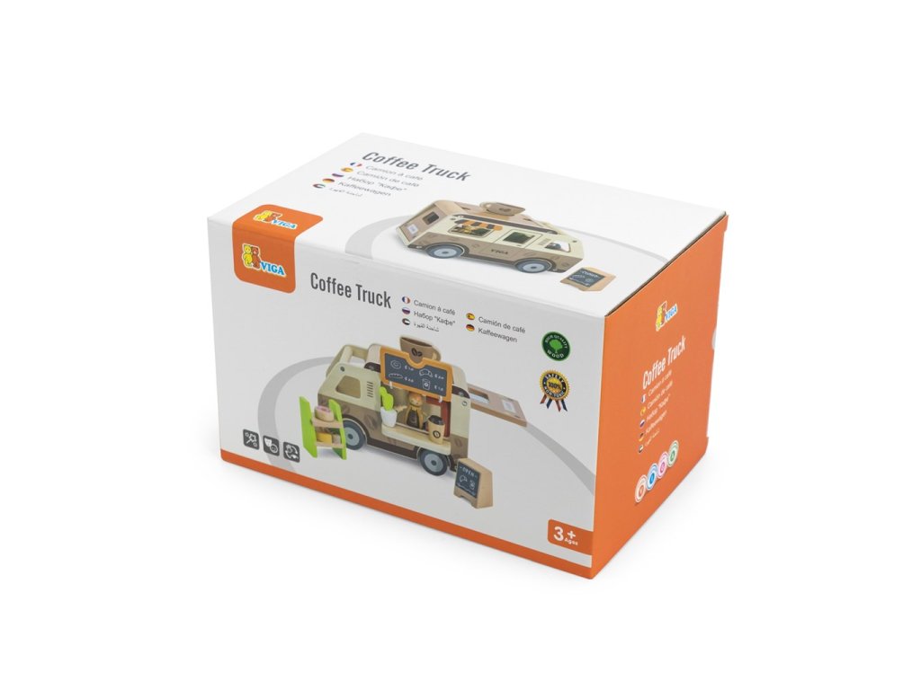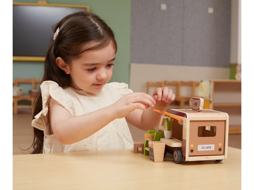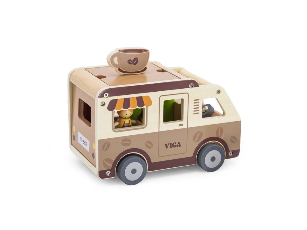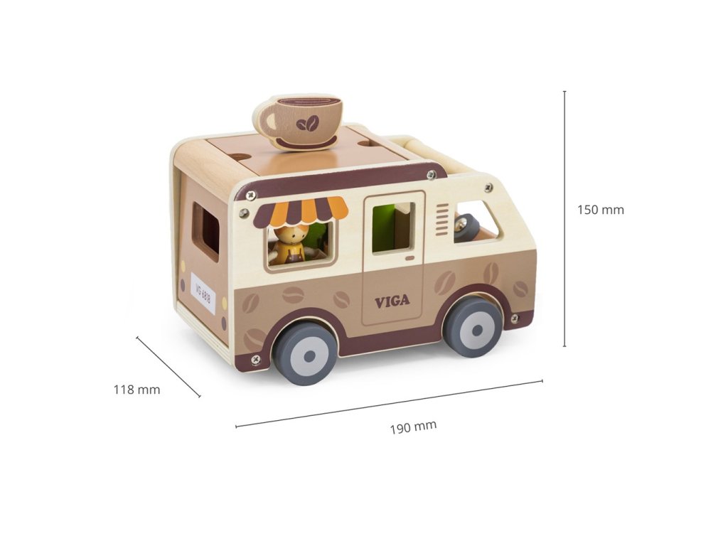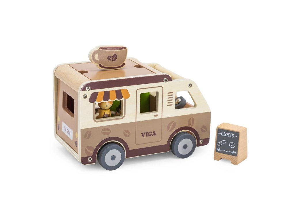 Drevená mobilná kaviarnička je mimoriadne kreatívna a starostlivo spracovaná hračka, ktorá deti privádza do fascinujúceho sveta kaviarenských dobrodružstiev. Vďaka realistickým prvkom môžu deti vystúpiť v úlohe baristu a obsluhovať svojich „zákazníkov“, čo robí hru veľmi pútavú. Kaviarnička nielen baví, ale taktiež podporuje rozvoj dieťaťa v mnohých smeroch: rozvíja fantáziu, motoriku i sociálne zručnosti. Hra na prípravu kávy a podávanie pokrmov rozvíja empatiu aj komunikačné schopnosti a učia deti interakciu v rôznych situáciách.