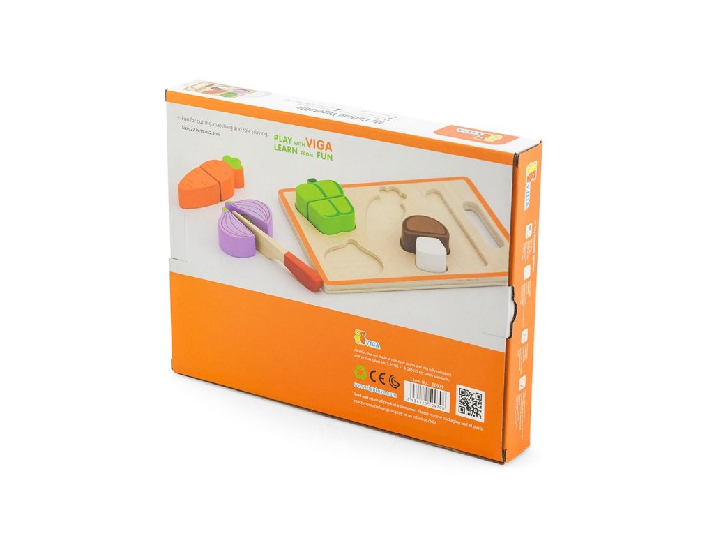 Súprava na kříje od spoločnosti Viga je ideálnou hračkou, ktorá podnecuje detskú predstavivosť. Pri spoločnej hre bude môcť každý rodič svoje dieťa naučiť, ako v budúcnosti používať ostré kuchynské doplnky. Ako bonus sú všetky výrobky spojené suchým zipsom, čo umožňuje ich opäť zložiť dohromady. Celá súprava je vyrobená z lakovaného dreva a natretá nezávadnými farbami .