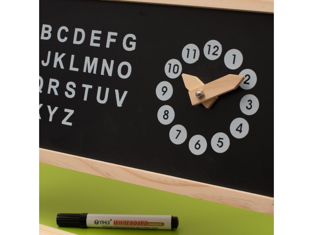 - obojstrannú písaciu plochu – bielu magnetickú stranu na fixku a klasickú čiernu na kreslenie kriedou,