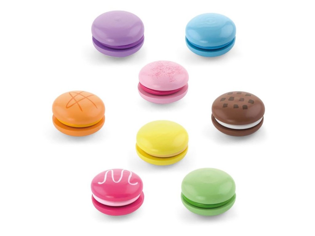 Súprava ôsmich príchutí sušienok s makrónkami. Dieliky sa pripevňujú pomocou suchého zipsu a podporujú detskú kreativitu pri výrobe pekných makrónok.