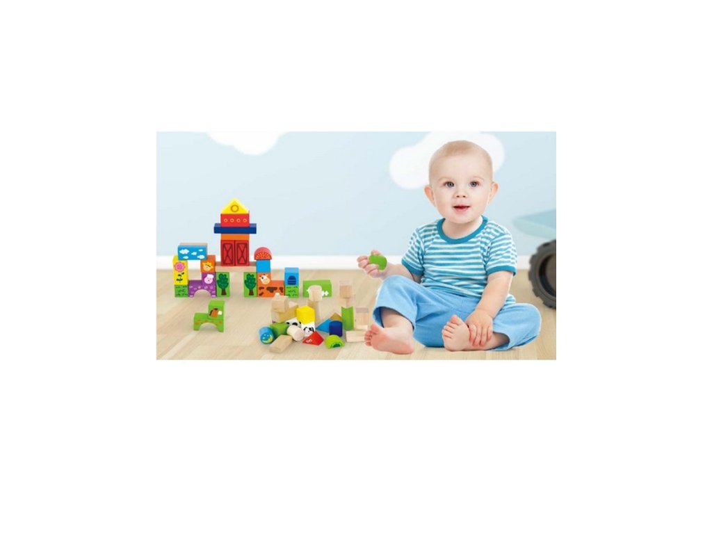Drevené kocky pre deti Viga Farma 50 dielov