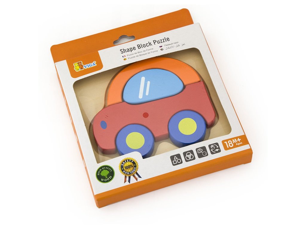 Kvalitné drevené puzzle pre najmenších Viga Auto. Puzzle na drevenom podklade je tvorené piatimi dielikmi. Veľké oblé dieliky zaisťujú ľahkú manipuláciu a priložená doska s vyfrézovaným obrysom uľahčuje skladanie a správne zapadnutie dielikov. Balenie obsahuje 4 dieliky. Určené pre deti od 18 mesiacov. Prvé puzzle pre Vaše malé deti, má veľmi výrazné farby, jednoduchý design a veľké dieliky. Našou prioritou je bezpečnosť a kvalita našich výrobkov, a preto farby použité na hračkách nie sú toxické a spĺňajú bezpečnostné štandardy (EN71 a ASTM). Hračka je vhodná aj ako krásny darček pre našich najmenších. Rozmer cca: 145 x 145 x 18 mmDodatočné parametre