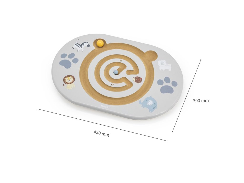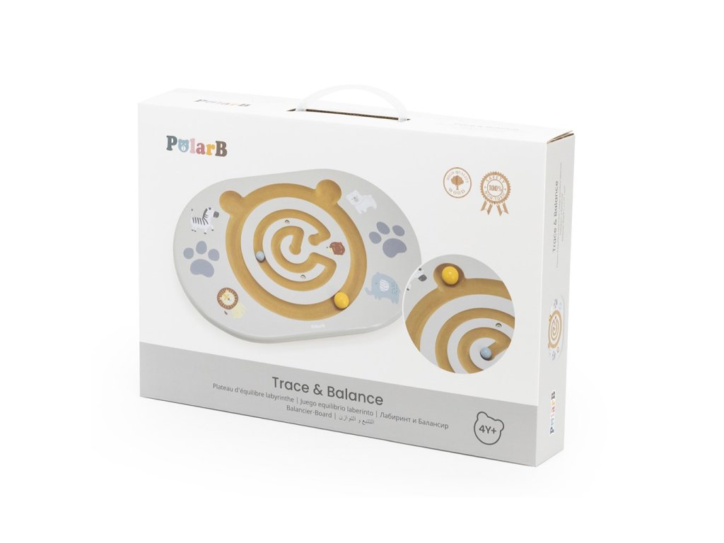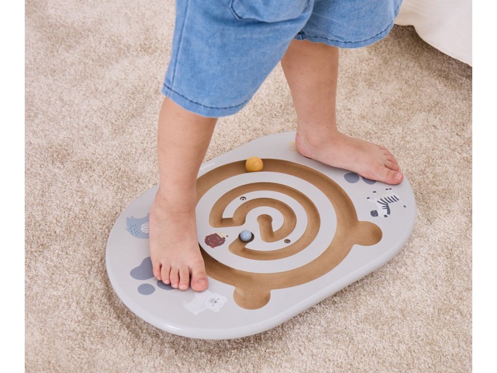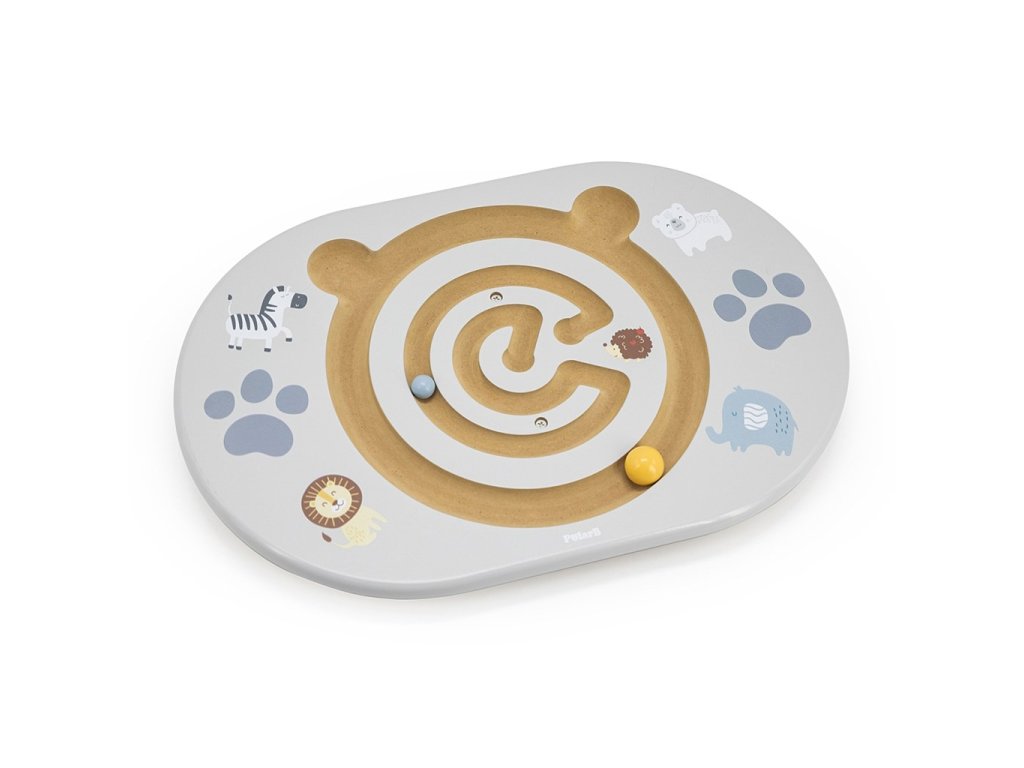 Balansujúci labyrint je ideálna hračka pre deti od 4 rokov , ktorá podporuje rozvoj rovnováhy, pohybovej koordinácie a koncentrácie. Sada obsahuje balančnú dosku s vyfrézovaným labyrintom v tvare medvedíka a dve drevené guličky. Úlohou dieťaťa je pomocou balansovania posúvať guľôčku po dráhe, čím si hravou formou trénuje rovnováhu a kontrolu tela.