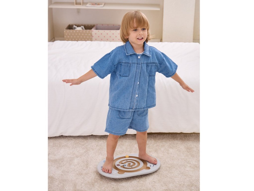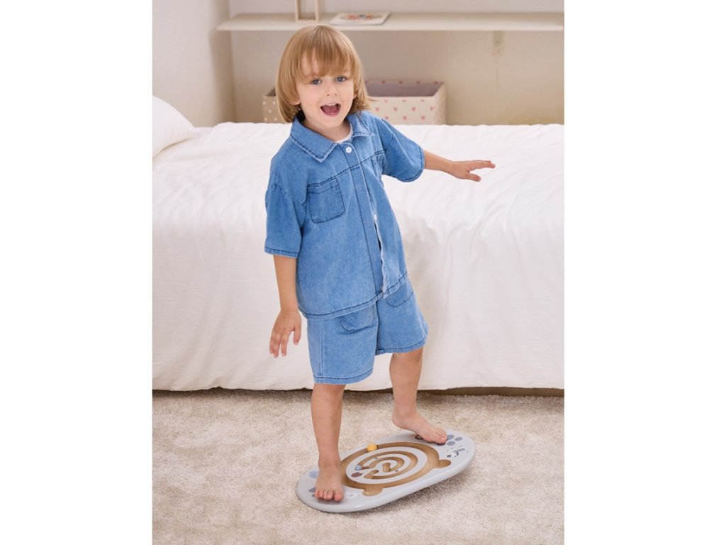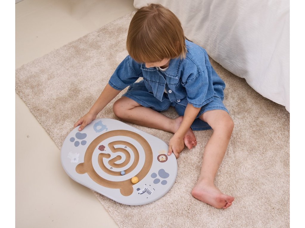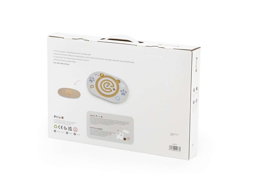 Balansujúci labyrint je ideálna hračka pre deti od 4 rokov , ktorá podporuje rozvoj rovnováhy, pohybovej koordinácie a koncentrácie. Sada obsahuje balančnú dosku s vyfrézovaným labyrintom v tvare medvedíka a dve drevené guličky. Úlohou dieťaťa je pomocou balansovania posúvať guľôčku po dráhe, čím si hravou formou trénuje rovnováhu a kontrolu tela.