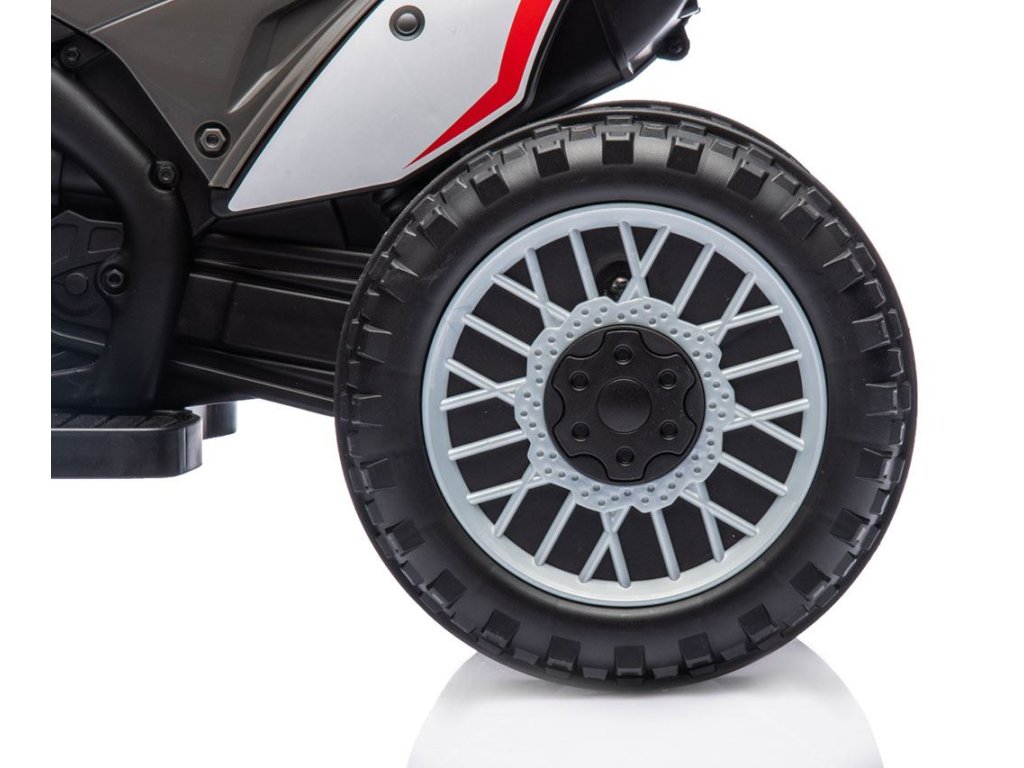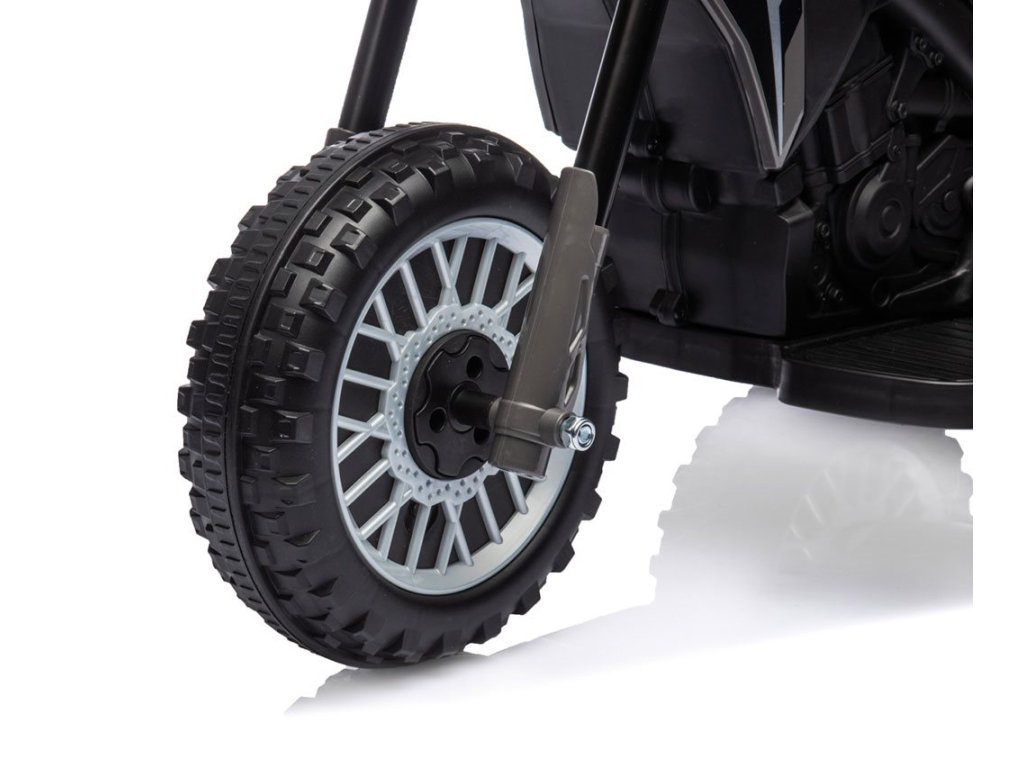 Po zapnutí sa ozve zvuk motora a po zošliapnutí plynového pedála sa motorka rozbehne. Veľké kolesá s terénnym vzorom zaisťujú stabilitu pri jazde vonku a tvarované sedadlo zaisťuje pohodlie a bezpečnosť najmenších užívateľov. Oceľové osi kolies zaručujú stabilitu a odolnosť vozidla. Súčasťou je aj klaksón, vďaka ktorému bude hranie ešte zábavnejšie.