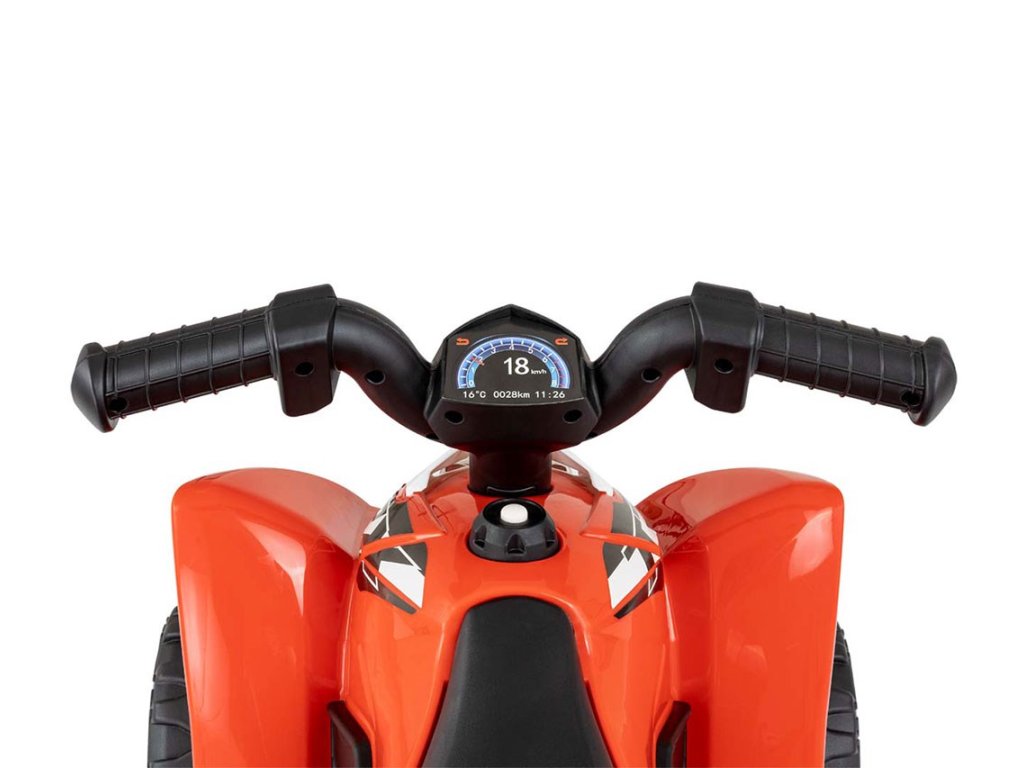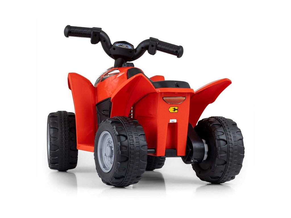 Veľké, široké kolesá s terénnym dezénom zaisťujú mobilitu pri výletoch mimo domova a tvarované sedadlo poskytuje dostatočný komfort a bezpečnosť pre najmenších užívateľov. Stabilitu a odolnosť štvorkolky zaručujú oceľové osi kolies. Súčasťou výbavy je aj klaksón, s ktorým bude zábava ešte zaujímavejšia.
