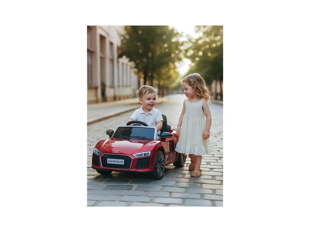 Detské elektrické autíčko Audi R8 Spyder Maxi je štýlový a realistický model inšpirovaný skutočným športovým vozidlom Audi R8. Tento model je licencovaný značkou Audi, čo zaisťuje verné spracovanie a vysokú kvalitu. Autíčko je vybavené výkonnou batériou 12V 7Ah, ktorá zaisťuje dostatok energie pre dlhšiu jazdu, a dvoma motormi s výkonom 35W každý (celkom 70W), čo poskytuje dostatočný výkon pre hladkú a plynulú jazdu, či už na rovných povrchoch alebo miernom teréne.