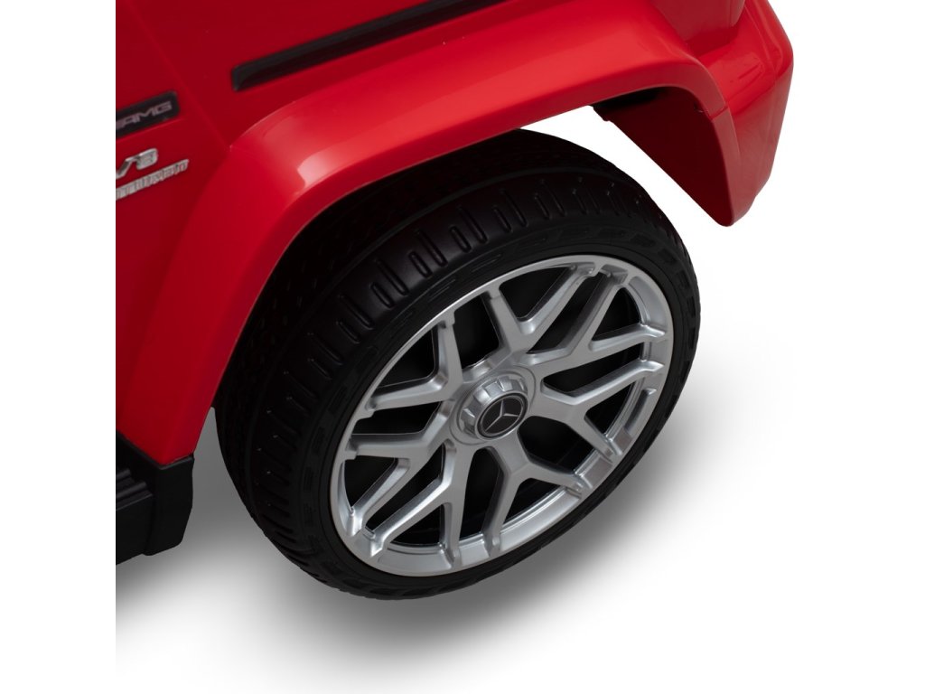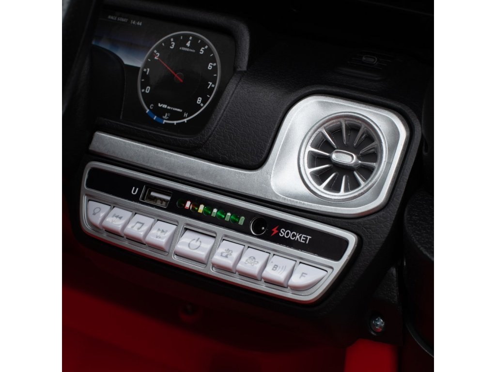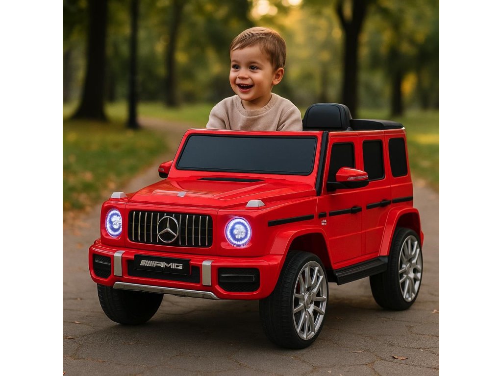 Autíčko vychádza z obľúbeného modelu Mercedes-Benz G63 AMG a zaujme svojim precíznym spracovaním do najmenšieho detailu – od športového volantu cez prehľadnú palubnú dosku až po štýlové kolesá s logom Mercedes. Otváracie dvere a predné LED svetlá dodávajú autíčku ešte autentickejší vzhľad.