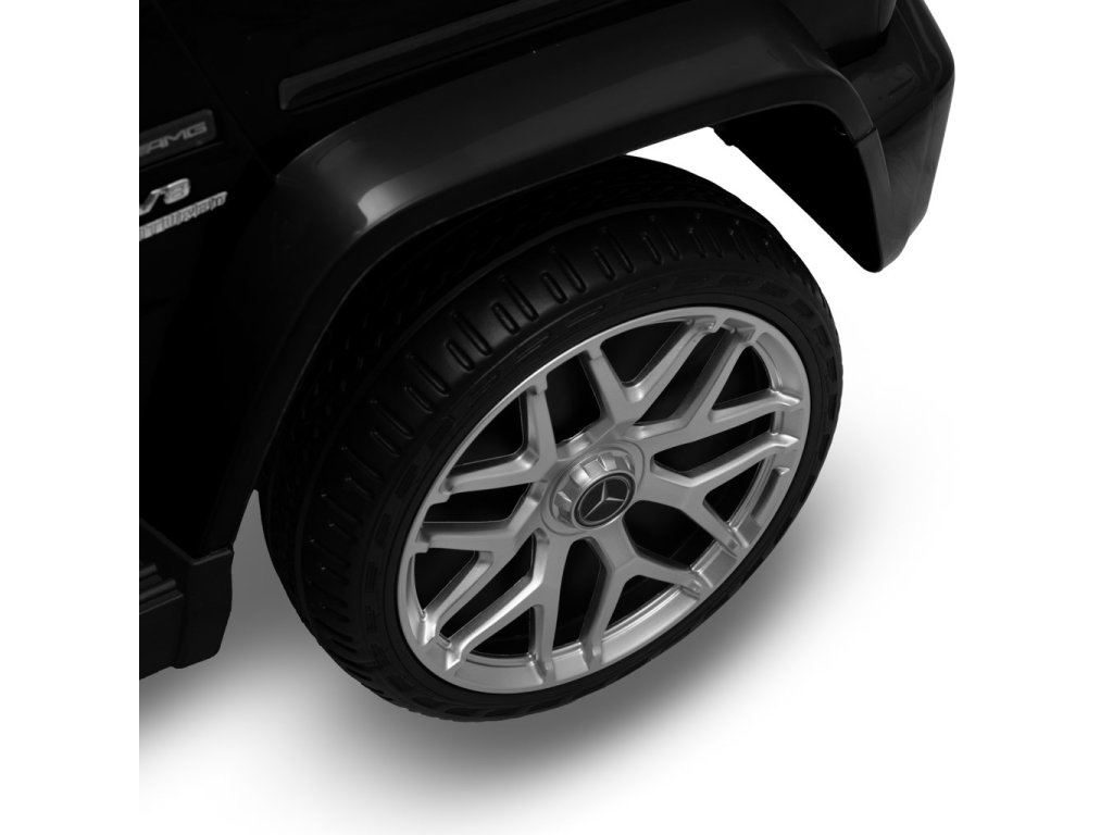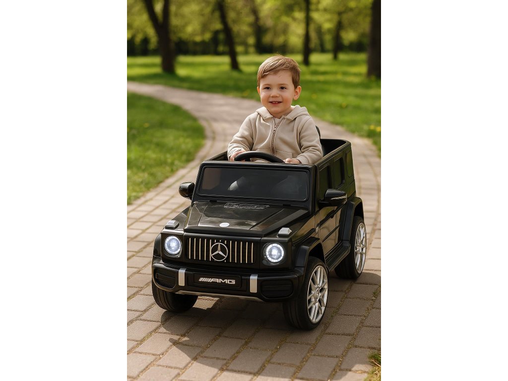 Autíčko vychádza z obľúbeného modelu Mercedes-Benz G63 AMG a zaujme svojim precíznym spracovaním do najmenšieho detailu – od športového volantu cez prehľadnú palubnú dosku až po štýlové kolesá s logom Mercedes. Otváracie dvere a predné LED svetlá dodávajú autíčku ešte autentickejší vzhľad.