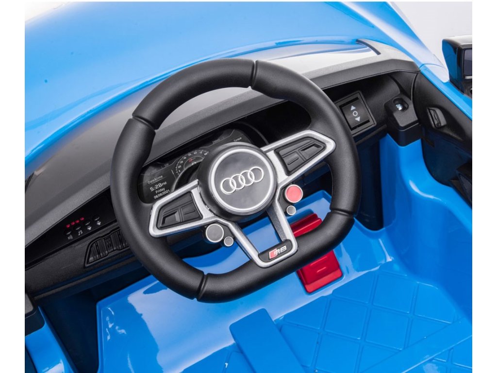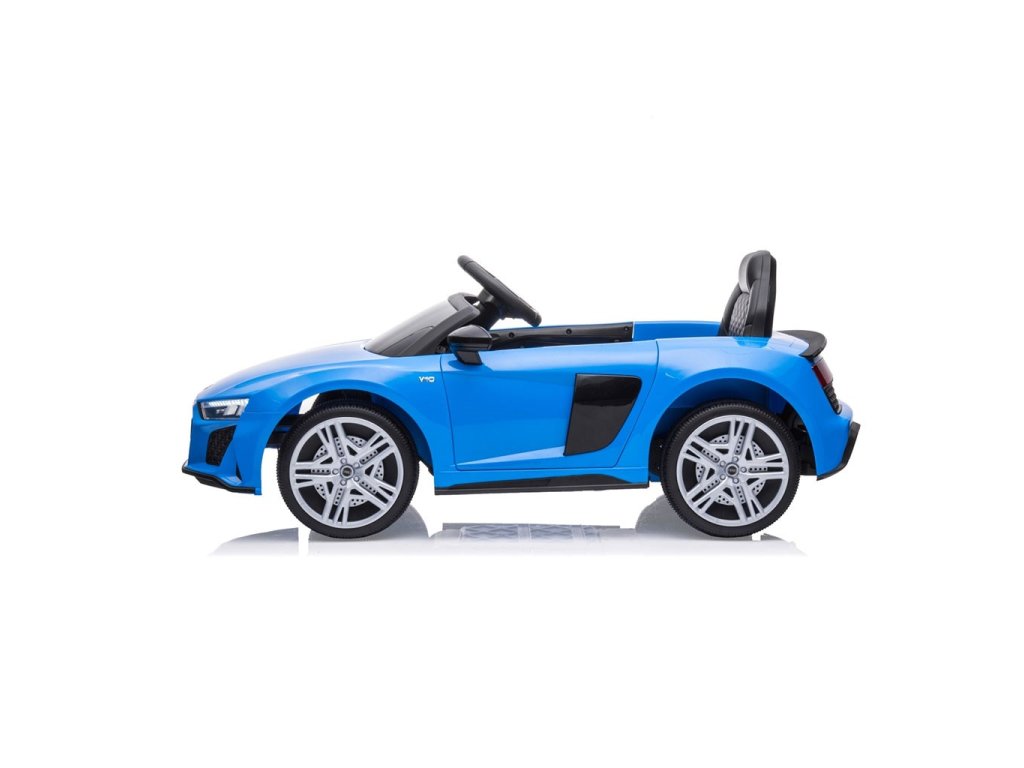 Po zošliapnutí plynového pedála tohto úžasného Audi R8 Spyder sa vozidlo rozbehne a zároveň sa rozsvietia predné svetlomety vďaka dvom motorom. Veľké, široké EVA kolesá s behúňom a športovými ráfikmi zaistia mobilitu pri výletoch mimo domova, zatiaľ čo profilované sedadlo poskytne dieťaťu pohodlie a bezpečnosť. Oceľové nápravy kolies zaisťujú stabilitu a odolnosť vozidla. Zábava nekončí: hudobné funkcie na kokpite, USB port, Bluetooth, prehrávanie hudby, ovládanie hlasitosti +/- , 4 piesne po stlačení tlačidla na volante vľavo, zvuk klaksónu po stlačení tlačidla na pravej strane volantu – to všetko robí hru ešte zaujímavejšou!