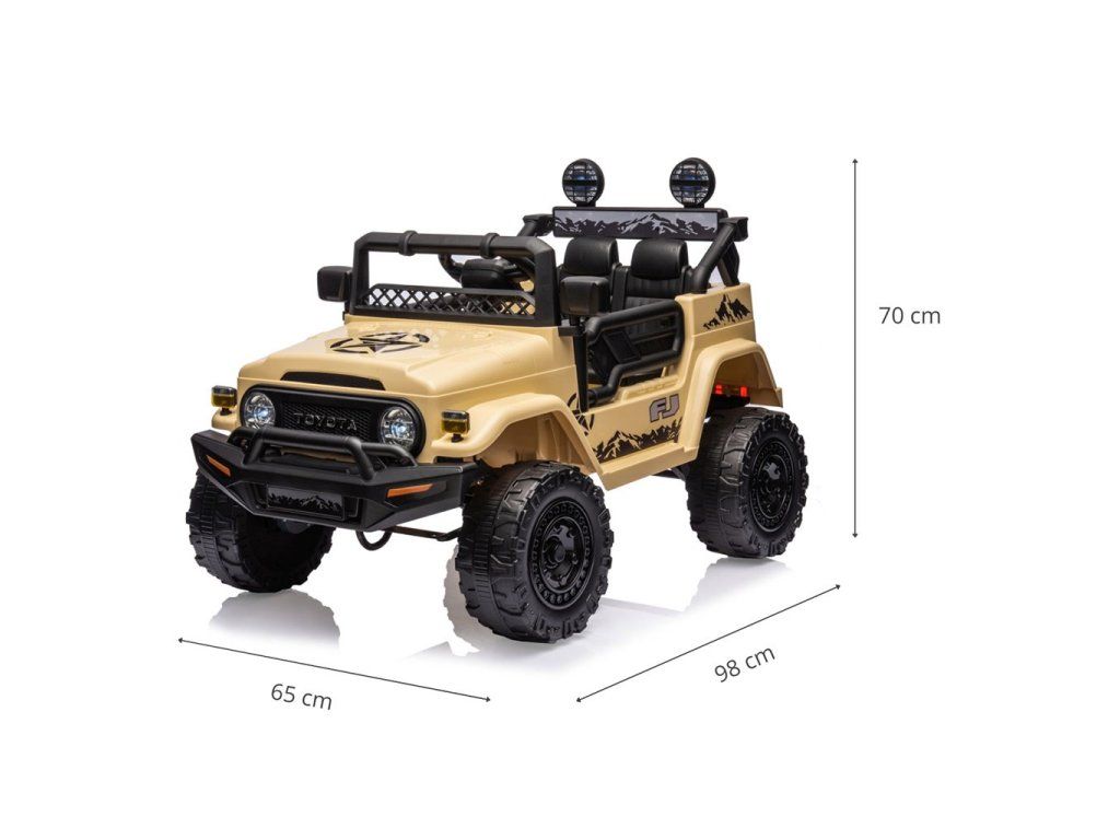 TOYOTA FJ CRUISER poskytne vášmu dieťaťu skvelú zábavu pre rozvoj motorických zručností. Je vyrobené z odolného plastu. Má 12 voltovú batériu, diaľkové ovládanie, predné a zadné svetlá, zvukové efekty na volante, dvoje otváracie dvere a bezpečnostné pásy - tým všetkým sa odlišuje od ostatných vozidiel tohto typu a robí hru ešte zábavnejšou!