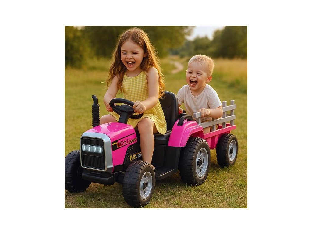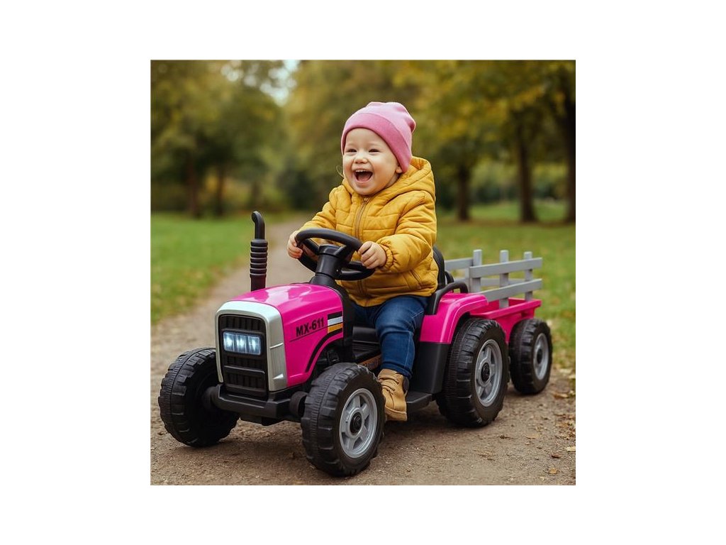 Detský elektrický traktor Baby Mix s výkonnými motormi 2x45W prichádza v novom inovatívnom dizajne. Traktor má vlečku s ktorou dieťa môže prevážať svoje hračky a poklady.