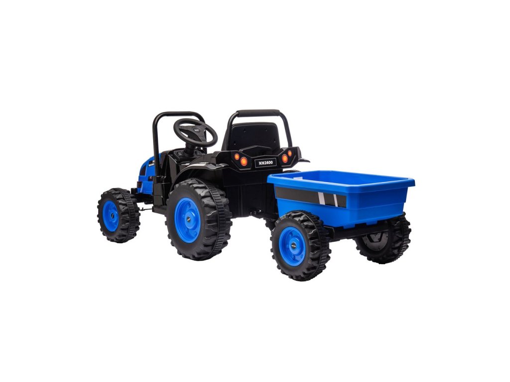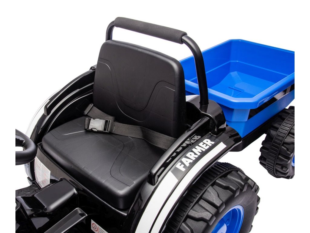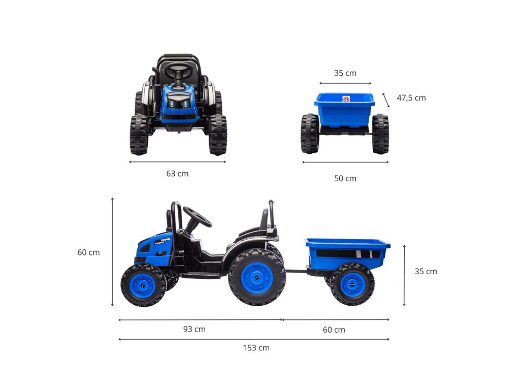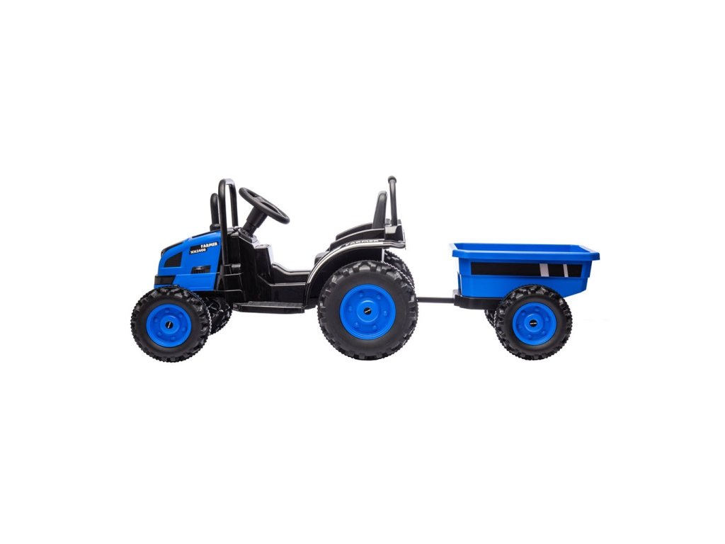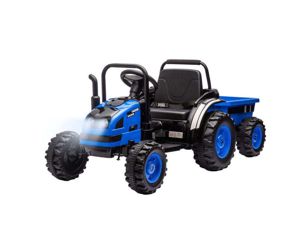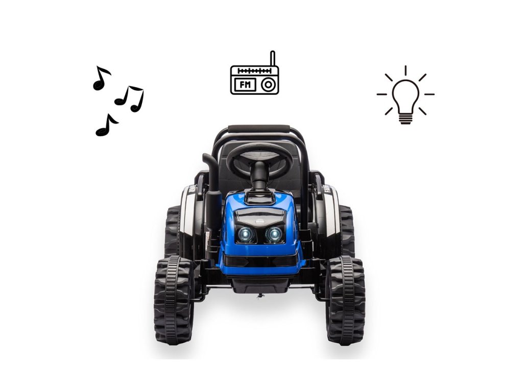 Ide o ideálne vozidlo pre deti vo veku od 3 do 5 rokov. Traktor je dodávaný s prívesom pre ďalšiu zábavu. Kovové bezpečnostné tyče vpredu a vzadu a imitácia komína/výfuku, vrčivý zvuk motora traktora, to všetko umožňuje malým vodičom popustiť uzdu svojej fantázii a cítiť sa ako skutoční traktoristi. Vypínač aktivuje realistický vrčivý zvuk motora traktora, zatiaľ čo tlačidlo súčasne vypína vozidlo. Dva motory umiestnené v traktore dosahujú priemernú rýchlosť 3-5 km/h.