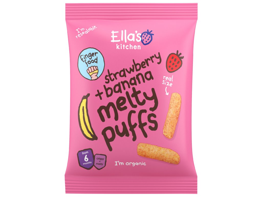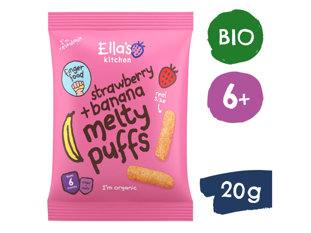 Tieto chrumky skvele padnú do detskej ručičky, takže sa s nimi budú rady kŕmiť samy. Okrem toho, že si pochutnajú a poláskajú chuťové poháriky jahodami a banánom, precvičia si hravo aj jemnú motoriku a zlepšia koordináciu oko-ruka. Natiahnuť prstíky, uchopiť a… šup do pusy! Maškrtiť ich môžu deti už od šiestich mesiacov a maškrtiť ich môžu bez výčitiek – neobsahujú totiž žiadne pridané cukry, soľ ani umelé farbivá.