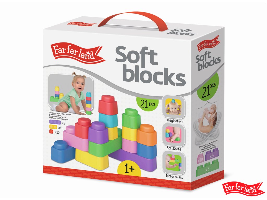 Far Far Land Stavebnica mäkká. Balenie obsahuje 21 mäkkých blokov (5xtrojblok, 6xdvojblok, 10xjednoblok). Všetky bloky sú vyrobené z mäkkého bezpečného materiálu.Dodatočné parametre