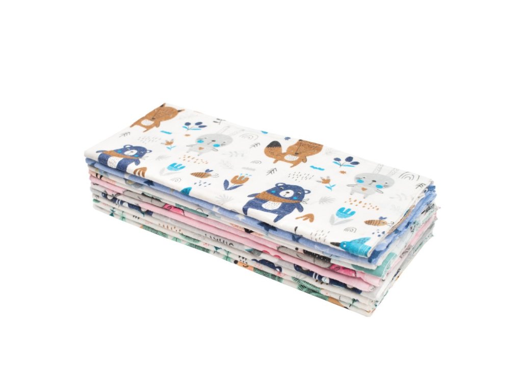 Cenovo výhodné balenie. Súprava flanelových plienok pre bábätká. Klasické flanelové detské plienky s veselými obrázkami. Plienky sú vyrobené z kvalitného materiálu, možno ich použiť aj ako osušku či podložku pod bábätko. Plienky majú dva okraje zašité a dva tkané, vďaka čomu nehrozí štiepenie pri dlhšom používaní a plienky lepšie držia tvar. V balení je 10 ks. Rozmer cca 70x80 cm. Zloženie 100% bavlna. Gramáž 190 g/m2. Farby a obrázky sa líšia podľa aktuálnej ponuky.- Produkt českej značky
