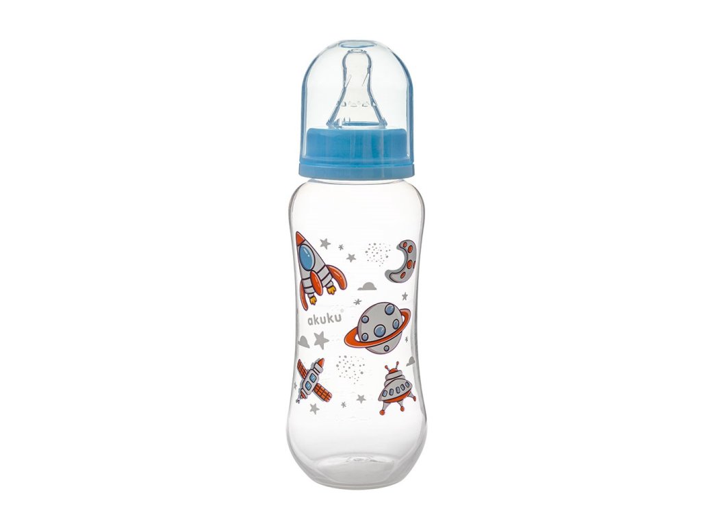 Plastová fľaša s obrázkom Akuku. Fľaša obsahuje farebný uzáver, veselé obrázky a silikónový cumlík so strednou rýchlosťou prietoku. Obsah 250 ml. Neobsahuje BPA. Zloženie: polypropylén. Obrázky na fľaši sa môžu líšiť podľa aktuálnej ponuky.