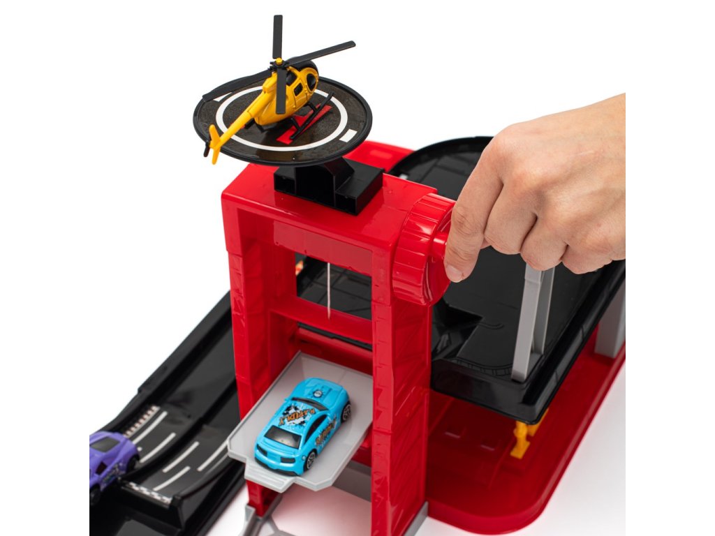 Detské parkovisko Baby Mix s výťahom , čerpacou stanicou a helikoptérou je zaručenou zábavou pre deti na dlhé hodiny. Rozmery parkoviska sú 60 x 33 x 29 cm, takže je prakovisko ideálne na hru na podlahe alebo stole. Celá sada detského parkoviska je navrhnutá tak, aby podnecovala detskú predstavivosť, podporovala rozvoj jemnej motoriky a zároveň poskytla bezpečné prostredie na hru.