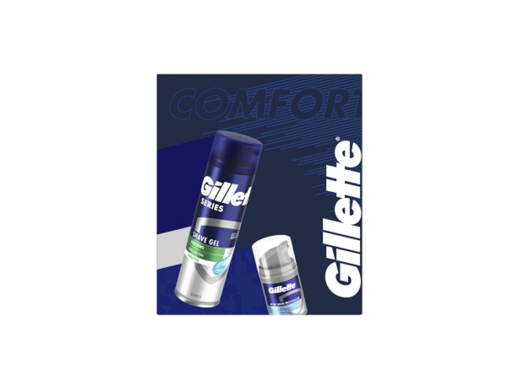 Darujte bezproblémové oholenie od začiatku až do konca v darčekovej sade Gillette Sensitive Skin. Obsahuje 200ml gél na holenie Gillette Sensitive Skin a 50ml krém po holení Gillette Sensitive Skin. Gél na holenie je vhodný pre citlivú pokožku a obsahuje komplex Ultra Comfort, ktorý ochladzuje a upokojuje pokožku, čím ju pri holení pomáha chrániť, takže je potom hladká a príjemná na dotyk. Krém po holení čerstvo oholenú pokožku hydratuje a upokojuje.