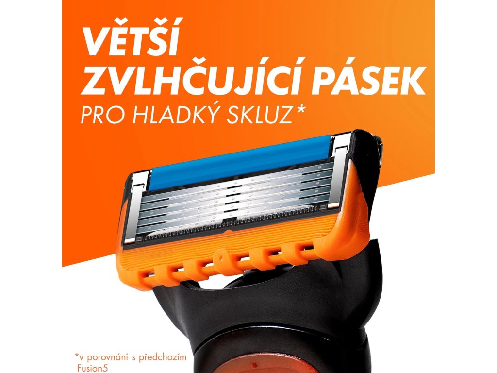 Zvlhčujúci pásik na hlavici Gillette Fusion 5 pokožku zvláčňuje a zabraňuje tak jej začervenaniu a navyše vás svojim vyblednutím upozorní na fakt, že už je na čase vymeniť hlavicu za novú.