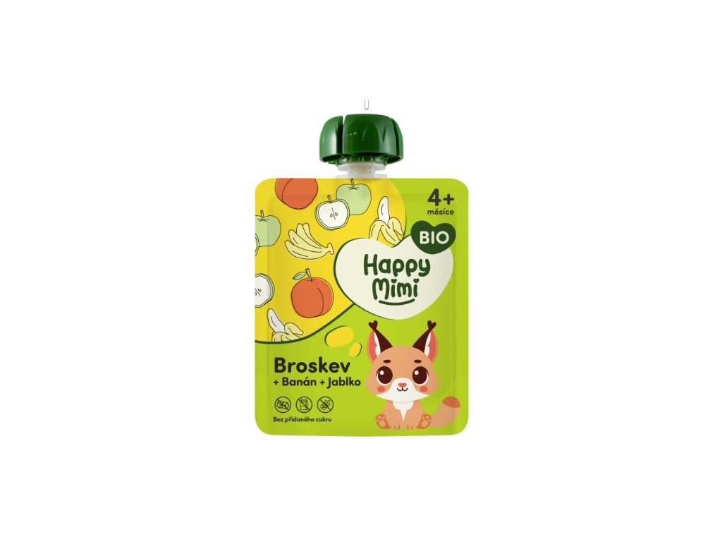 Happy Mimi BIO ovocný príkrm 90g Broskyňa