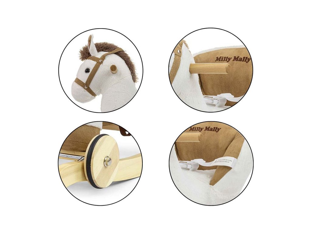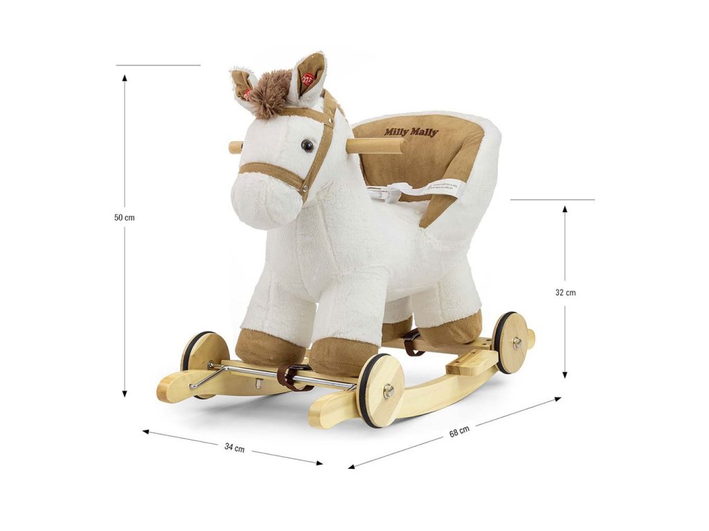Hojdací koník s melódiou a kolieskami Milly Mally Polly biely