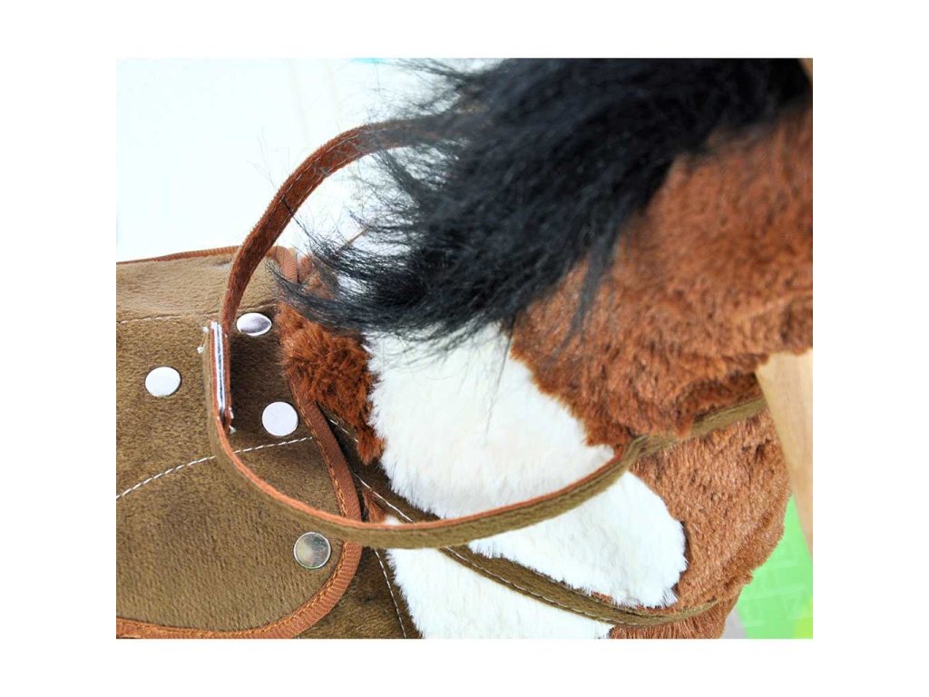 - koník má sedlo s strmeňmi, uzdu a drevené rukoväte