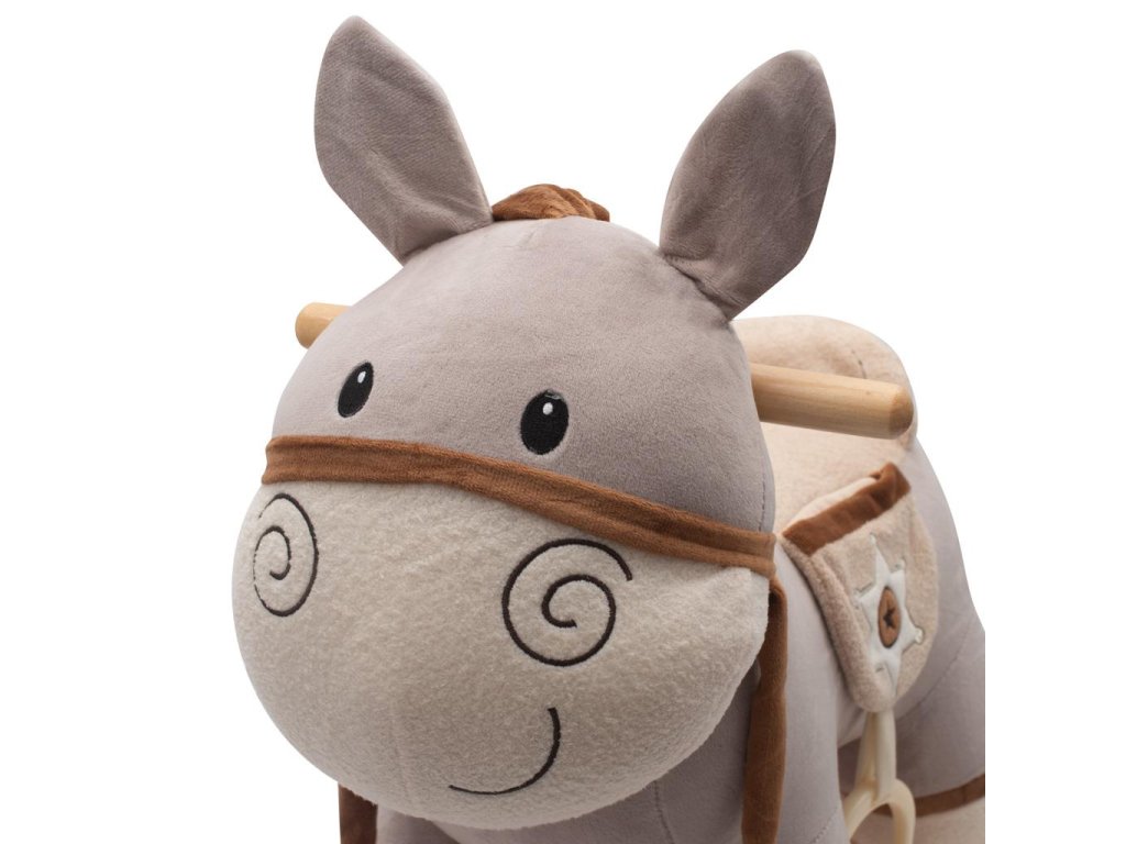 Krásny hojdací oslík PlayTo bol navrhnutý pre deti, ktoré majú rady hojdanie a dobrodružstvo. Je vyrobený z hebkého a veľmi príjemného na dotyk plyšového materiálu. Po stlačení ušká prehrá českú pesničku "Prší, prší, len sa leje" alebo po stlačení druhého ušká slovenskú verziu "Prší, prší, ľan sa leje". Batérie sa vkladajú do puzdra umiestneného na brušku. Hračka pomáha dieťaťu rozvíjať koordináciu pohybov a podnecuje jeho predstavivosť.