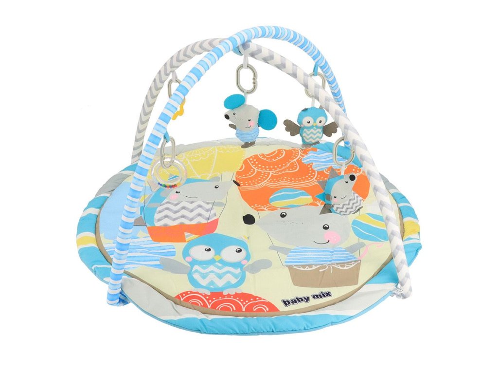 Krásna vzdelávacia hracia deka s hrazdou Baby Mix, rozvíja detskú predstavivosť vďaka poznávaniu farieb a tvarov. Mäkká polstrovaná deka so sviežim designom. Vďaka jednoduchej konštrukcii a dodávanej taške je možné deku ľahko prenášať. Zavesené hračky: hrkálky, pískacie hračky. Hrazdičky sa dajú odopnúť, rovnako tak ako hračky. Príjemný a mäkký materiál umožňuje pohodlné ležanie na brušku alebo chrbte a umožňuje slobodu pohybu Vášho dieťaťa. Hracia deka poskytuje bezpečné a priame prostredie a stane sa obľúbeným miestom pre vaše dieťatko.