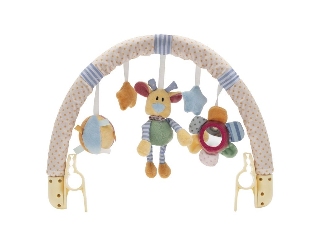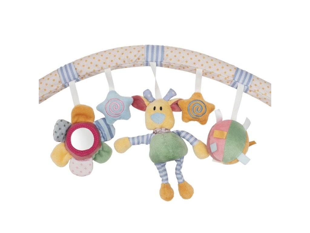 Krásna farebná hračka - hrazdička Baby Mix do kočíka. Na hrazdičke sú plyšové hračky v tvare kvety, medvedíka a hviezdičiek. Hrazdička má dva klipy, ktorými je možné hračku pripevniť ku kočíku, lehátku alebo autosedačke. Tvary a farby hračky lákajú pozornosť dieťaťa, učia ho a rozvíjajú tak detskú fantáziu. Hračka je vyrobená z kvalitného a príjemného materiálu.
