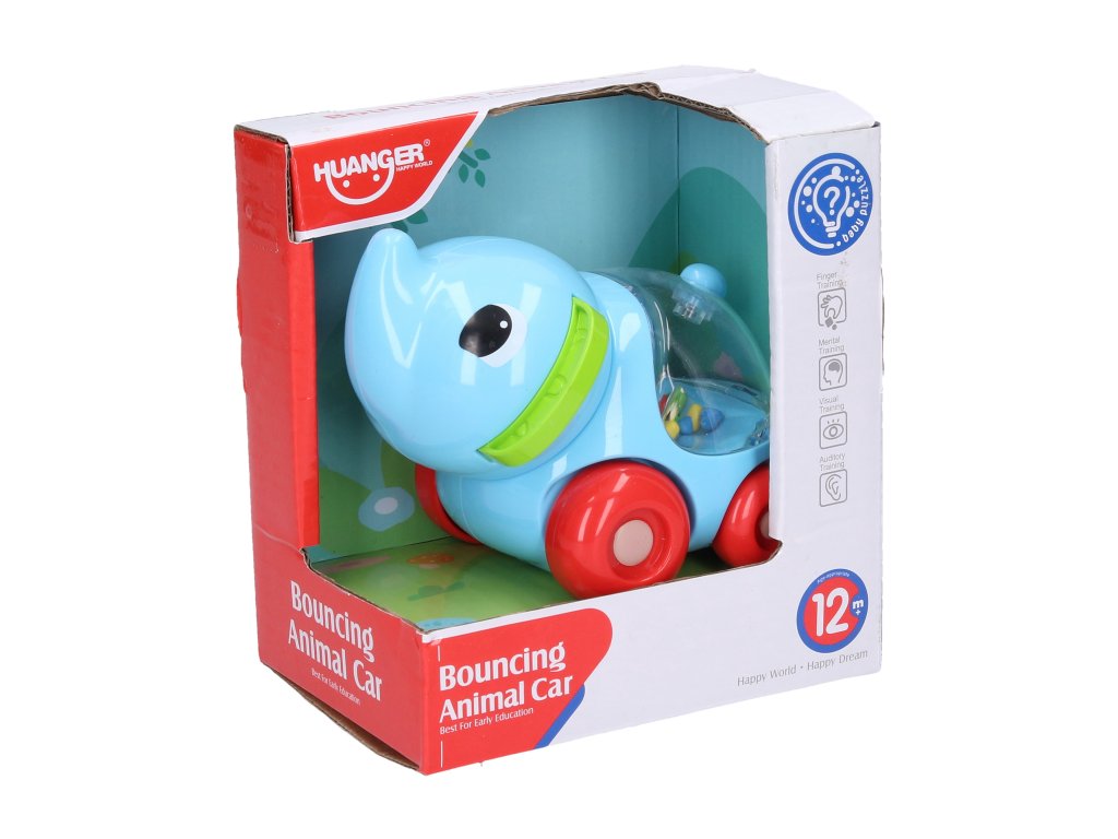 Hrkálka slon na kolieskach. Rozmery hračky 8,3x11x9 cm. Pri jazde hrkajú.Dodatočné parametre