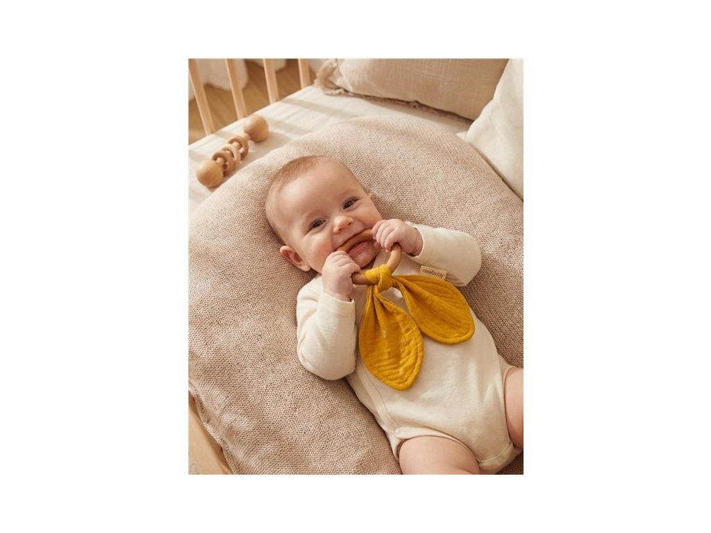 Hryzátko s mušelínovou plienkou je ideálna sada, keď sa dieťaťu prerezávajú zúbky. Hryzátko je vyrobené z bukového dreva šetrného k stredu a mäkkej mušelínovej látky. Úplne bezpečné pre deti prináša upokojujúcu úľavu pri prerezávaní zúbkov. Hryzátko je možné použiť aj ako hračku pre bábätká. Hryzátko sa dokonale hodí k našim ďalším mušelínovým výrobkom a vytvára tak krásnu sadu, ktorú je možné darovať na detskú oslavu.