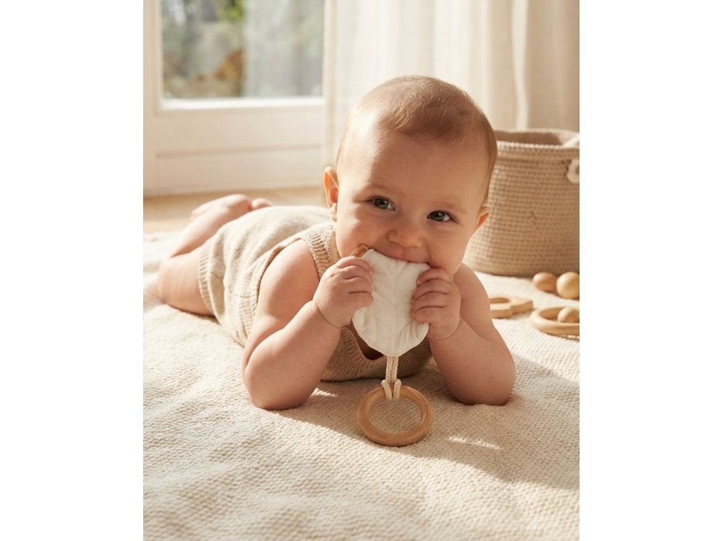 Hryzátko s mušelínovou plienkou je ideálna sada, keď sa dieťaťu prerezávajú zúbky. Hryzátko je vyrobené z bukového dreva šetrného k stredu a mäkkej mušelínovej látky. Úplne bezpečné pre deti prináša upokojujúcu úľavu pri prerezávaní zúbkov. Hryzátko je možné použiť aj ako hračku pre bábätká. Hryzátko sa dokonale hodí k našim ďalším mušelínovým výrobkom a vytvára tak krásnu sadu, ktorú je možné darovať na detskú oslavu.