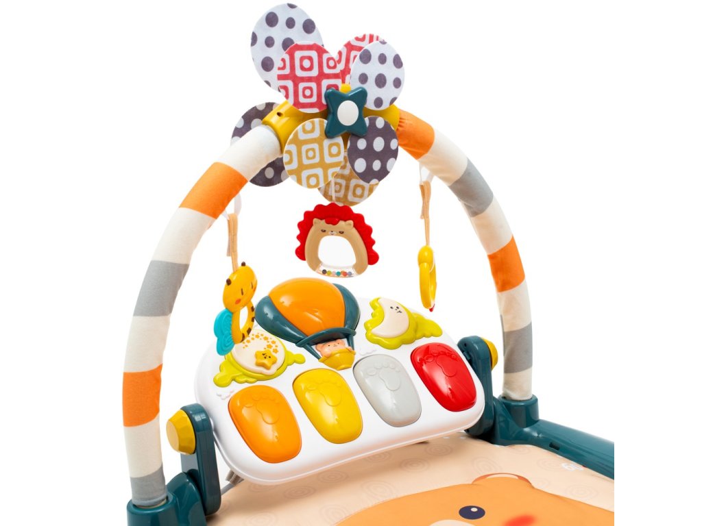 Interaktívna vzdelávacia podložka Baby Mix je fantastický produkt vytvorený pre najmenších, ktorý podporuje zmyslový a motorický vývoj dieťaťa už od prvých dní života. Vďaka farebným svetielkom, hudbe, hrkálke a mini pianu ponúka mnoho možností zábavy a zmyslovej stimulácie. Tri rôzne hudobné režimy umožňujú prispôsobiť zvuky nálade a potrebám dieťaťa, čím rozvíja jeho sluch a cit pre rytmus. Toto jedinečné zábavné centrum taktiež skvele motivuje dieťa k fyzickej aktivite – od naťahovania ručičiek až po kopanie nožičkami.