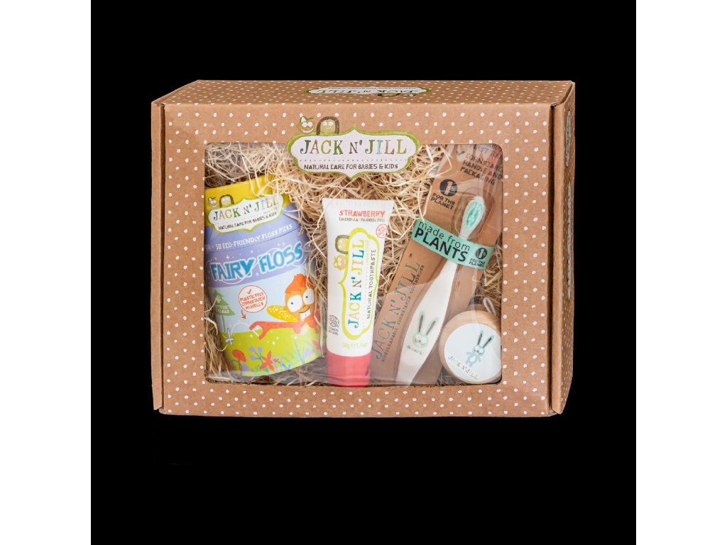 Chceli by ste motivovať svoje dieťatko na čistenie zúbkov? S naším novým darčekovým setom si užijete dokonalú zábavu. Každé dieťa túži po darčeku, ktorý je zábavný, a rodič zase chce, aby bol užitočný. V našom špeciálnom dentálnom balíčku nájdete oboje, šetrné produkty a aj niečo pre veľkú motiváciu na čistenie zúbkov. Roztomilý set obsahuje: Prírodnú zubnú pastu Jahoda Detská kefka na zuby Zajačik Balenie detských dentálnych nití Fairy Floss Darček – Motivačná a zábavná tabuľka čistenia zúbkov s nálepkami Darček – JOJO To všetko nájdete v peknom darčekovom balení.