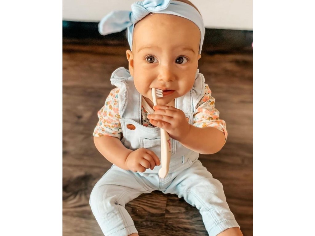 Prvá detská kefka na zuby svojho druhu, ktorá je rozložiteľná v prírode. Vyrobený zo 100% kukuričného škrobu a mäkkých nylonových vlákien. Celé balenie je biologicky rozložiteľné: obal je z recyklovaného papiera a okienko zo 100% kukuričného škrobu. Je vhodný od prvých zúbkov. Ergonomická rukoväť je prispôsobená pre pohodlný detský úchop a ľahko sa zmestí aj do malých detských ručičiek. Pokyny pre likvidáciu: Odlomte hlavičku kefky na zuby. Vyhadzujte ju zodpovedne. Pokiaľ je to možné, konzultujte to s miestnym recyklačným programom. (Nylon je recyklovateľný). Zvyšok kefky umiestnite do svojho kompostu. Obvykle trvá 90 dní, kým sa kefka na zuby v komerčnom komposte rozloží. Rozhodli ste sa správne! Či už sa kefky, ktorá doslúžila, zbavíte akýmkoľvek spôsobom, máte istotu, že sa nestane súčasťou skládky na ďalšie milióny rokov – na rozdiel od mnohých zubných kefiek, ktoré sa dnes používajú. Len si predstavte, koľko je ich v pôde po celom svete.