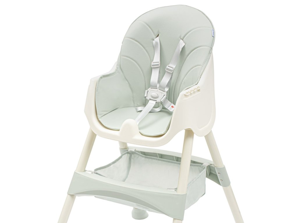 Jedálenská stolička Baby Mix má všetky funkcie, ktoré uľahčujú každodenné kŕmenie: nastaviteľná dvojitá tácka, 5bodové pásy, odnímateľné čalúnenie z eko kože, opierka nôh, veľký látkový kôš, protišmykové nožičky.